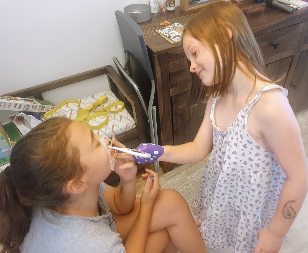Il faut dire qu’on en a subi quelques uns de ces tests au printemps dernier au moment de notre Covid family party ; alors quoi de mieux que de tourner en dĂ©rision par le jeu quelque chose qui est devenue une source d’angoisse absolue (une vraie phobie pour Agathe!)