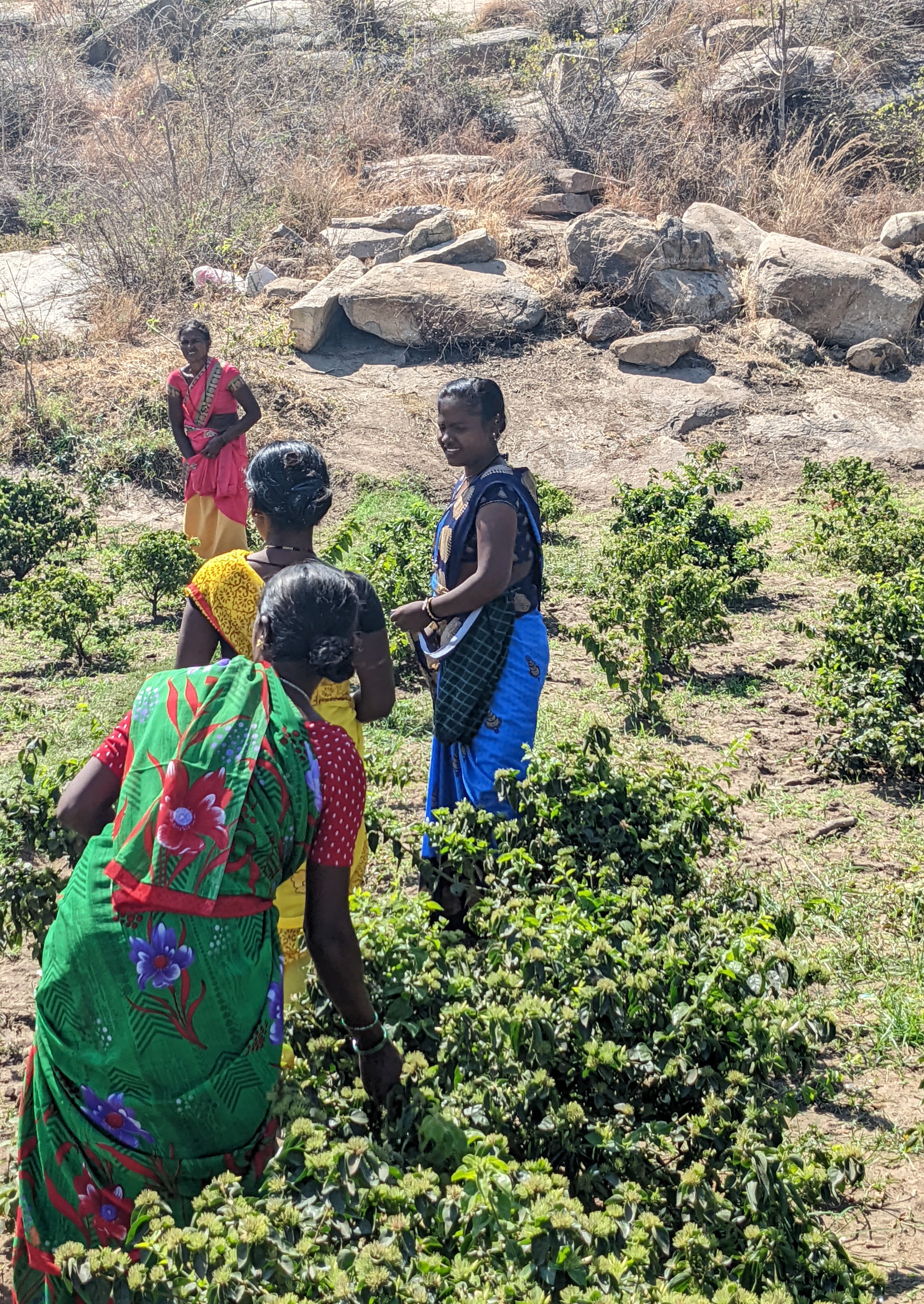 On a roulĂ© le long des riziĂšres structurĂ©es autour d’une multitude de canaux et de majestueux cocotiers. On a cueilli du jasmin avec les indiennes en sari et ramassĂ© de l’arachide dans le champs d’Ă cĂŽtĂ©. On a fait essayer notre scooter au fils de la gitane. On a bu un jus de canne Ă sucre et dĂ©jeunĂ© chez une famille Brahmane.