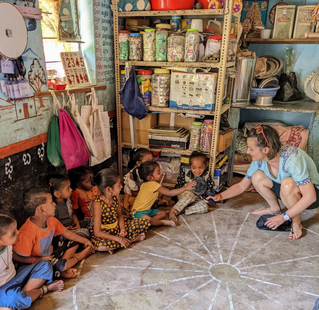Ce matin, Krishna (notre chauffeur de rickshaw) nous amĂšne Ă l’Ă©cole maternelle publique d’Hampi, lĂ oĂč ses enfants sont scolarisĂ©s. Pourquoi cette sortie ?